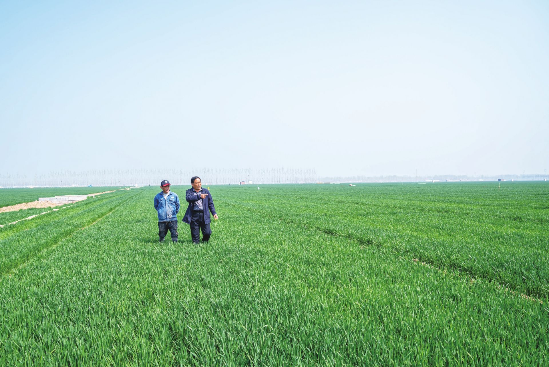 李化莊(右)察看麥苗長勢