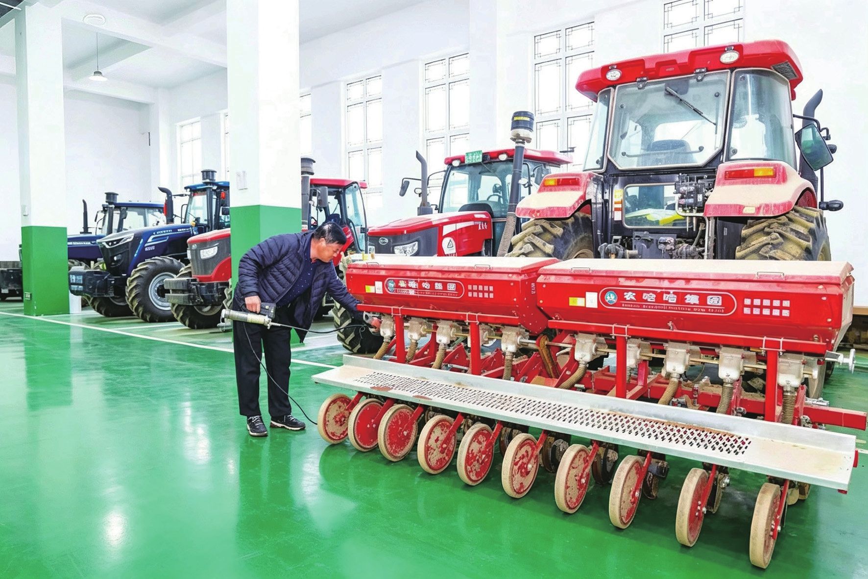 合作社工作人員檢修、調試農機