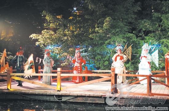 德州新聞網(wǎng)訊(記者 朱代軍)5月19日,慶祝中國旅游日紅色旅游棗莊行活動(dòng)啟動(dòng)。當(dāng)晚8點(diǎn),在棗莊市臺(tái)兒莊運(yùn)河古城,大型情景劇《夢回臺(tái)兒莊》首次對(duì)外公演。包括德州市旅游局、德州日?qǐng)?bào)在內(nèi)的全國幾十家旅游局、媒體等作為受邀嘉賓參加了此次活動(dòng)。《夢回臺(tái)兒莊》為大型水上實(shí)景演出,近百名專業(yè)演員和群眾演員在3公里古河道上,上演了 《童謠》、《鼓樂》、《劍舞》、《起航》、《祭祀》、《大戰(zhàn)》、《祈福》等節(jié)目,全方位演繹了臺(tái)兒莊悠久的運(yùn)河文化、富有地方特色的魯南風(fēng)情和震驚中外的臺(tái)兒莊大戰(zhàn)。